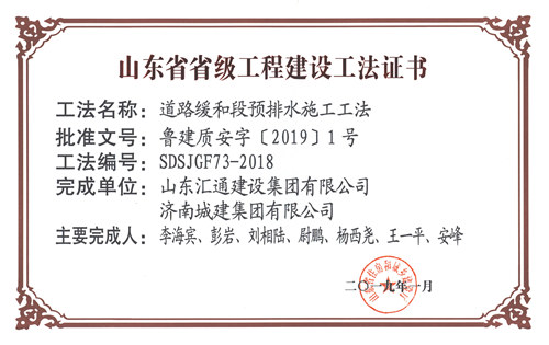 集團(tuán)“道路緩和段預(yù)排水施工工法”被評(píng)為山東省省級(jí)工程建設(shè)工法