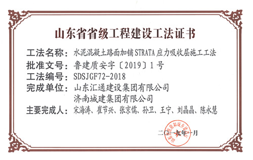 集團(tuán)“水泥混凝土路面加鋪STRATA應(yīng)力吸收層施工工法”被評(píng)為山東省省級(jí)工程建設(shè)工法