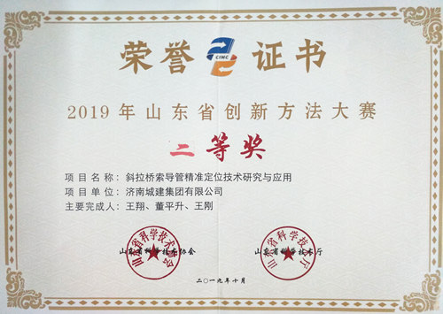 集團(tuán)《斜拉橋索導(dǎo)管精準(zhǔn)定位技術(shù)研究與應(yīng)用》榮獲“2019年度山東省創(chuàng)新方法大賽二等獎(jiǎng)”